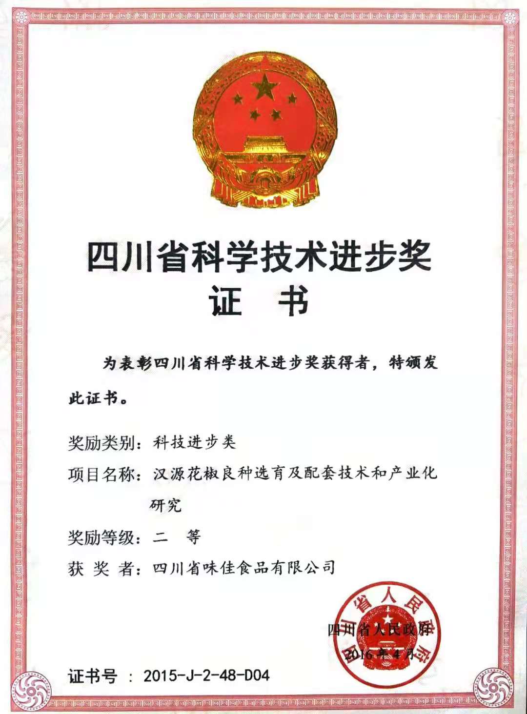 公司取得了“漢源花椒”國(guó)家地理標(biāo)志保護(hù)產(chǎn)品專用標(biāo)志使用權(quán), 榮獲中國(guó)綠色食品發(fā)展中心頒發(fā)的“貢椒源”漢源花椒和“貢椒源”花椒油的綠色食品證書(shū),通過(guò)了ISO9001質(zhì)量管理體系認(rèn)證,獲得“漢源縣規(guī)范生產(chǎn)示范企業(yè)”稱號(hào)。公司還先后獲得 “省級(jí)質(zhì)量信用A級(jí)”、“雅安市農(nóng)業(yè)產(chǎn)業(yè)化經(jīng)營(yíng)市級(jí)重點(diǎn)龍頭企業(yè)”、縣先進(jìn)企業(yè)、先進(jìn)集體、誠(chéng)信經(jīng)營(yíng)示范單位、守合同重信用企業(yè)、農(nóng)業(yè)產(chǎn)業(yè)化經(jīng)營(yíng)先進(jìn)獎(jiǎng)等榮譽(yù)稱號(hào)。2018年公司執(zhí)行董事陳豪被評(píng)為優(yōu)秀民營(yíng)企業(yè)家。